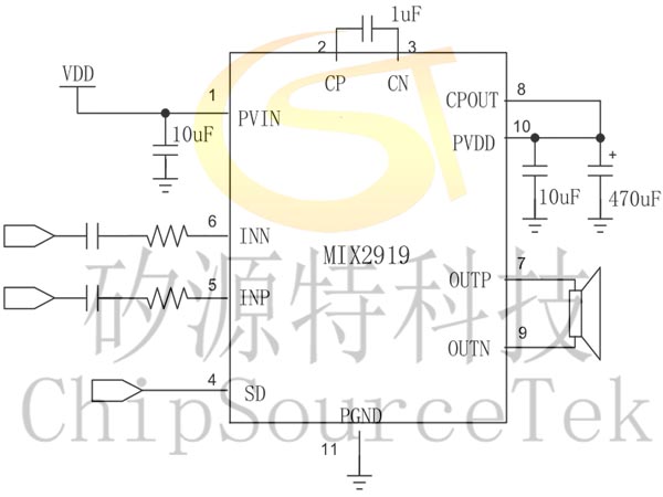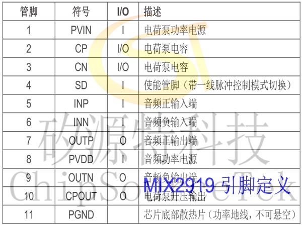 MIX2919 has a related shutdown function, which greatly extends the standby time of the system. Overheat protection enhances system reliability. The POP sound suppression function improves the auditory perception of the system and simplifies the system debugging.