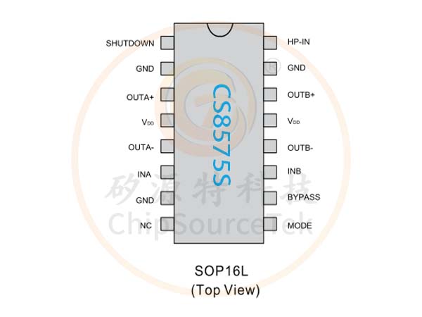 CS8575S provides the packaging form of SOP16L, with a rated operating temperature range of -40°C to 85°C.