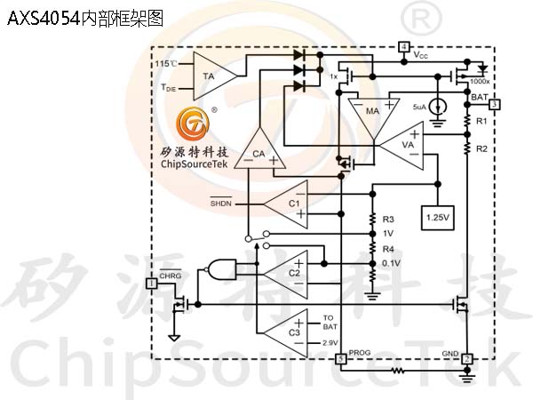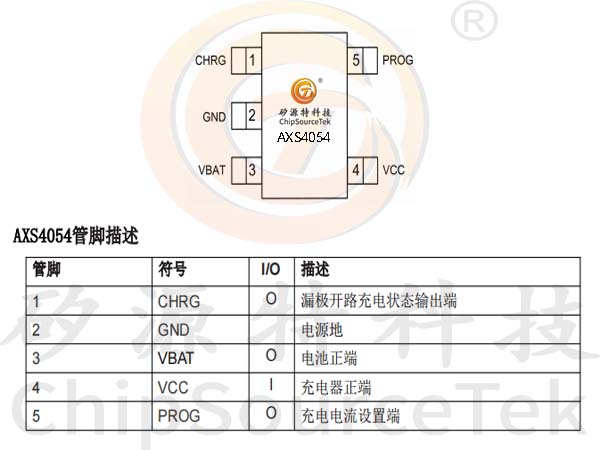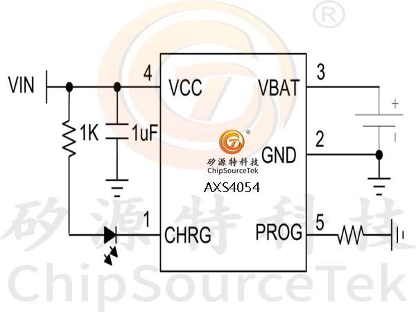 The AXS4054 is a single lithium-ion battery constant current/constant voltage linear charger with a simple external application circuit ideal for portable device applications, suitable for USB power supply and adapter power supply operation, internal with anti-reverse charging circuit, no need for external isolation diodes. The thermal feedback automatically adjusts the charging current to limit the chip temperature under high-power operation or high ambient temperature conditions.