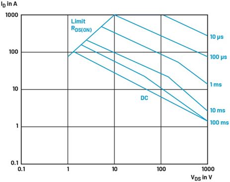 图2显示了MOSFET的典型安全工作区(SOA)曲线。SOA曲线定义了器件在不同电压降下可承载的电流大小,以及能够持续承载该电流的时长。如果希望有更大的电流长时间流过MOSFET,就必须选择SOA范围更大的MOSFET。SOA的范围越大,MOSFET的尺寸也就越大。这同样会增加元件的成本。为了实现元件尺寸的优化,通常会选用尽可能小的MOSFET,并确保其安全运行。这意味着所选的MOSFET既不尺寸过大,又要在实际应用中充分利用其SOA的大部分范围。为此,控制器IC要能够精确识别工作状态,以判断MOSFET的运行是否处于SOA的安全范围内。然而,许多控制器IC仅仅测量流过MOSFET的电流。若还能了解MOSFET两端的电压降,那就更好了。