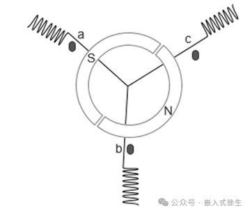 无刷电机的有感控制指在无刷电机(BLDC)中,一般采用3个开关型霍尔传感器检测转子位置,根据3个霍尔传感器输出的编码控制MOS管的通断,进而实现换相。