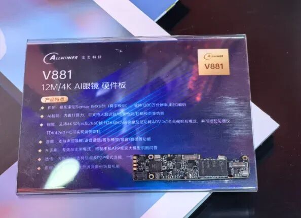 At the Snapdragon Summit on September 25th, the reporter saw the Xiaomi AI Glasses, which are equipped with the core components of the Snapdragon AR1 platform and integrate the Super Xiaoai Assistant, providing a top-notch imaging experience. The Thunderbird X3 Pro is powered by the Snapdragon AR1 platform and features a full-color dual-eye display with a brightness of up to 6000 nits. Ziad Asghar disclosed that partner data shows that the frequency of users using AI agents on smart glasses is much higher than that on mobile phones alone. "Dual-end collaboration" is unleashing the full potential of AI.Allwinner V881 makes its debut, supporting 24M pixels and dual Wi-Fi6, assisting mainstream AI glasses In May, Chen Zhixiang, the deputy general manager of Allwinner Technology's Smart Video Division, stated that in response to the demands of the smart glasses market, Allwinner Technology was the first to introduce the V821 chip and solution. On October 28th, at the Allwinner Technology booth in Hall 1 of the 2025 CPS Security Expo, the reporter saw the latest V881 chip and solution launched by Allwinner Technology.